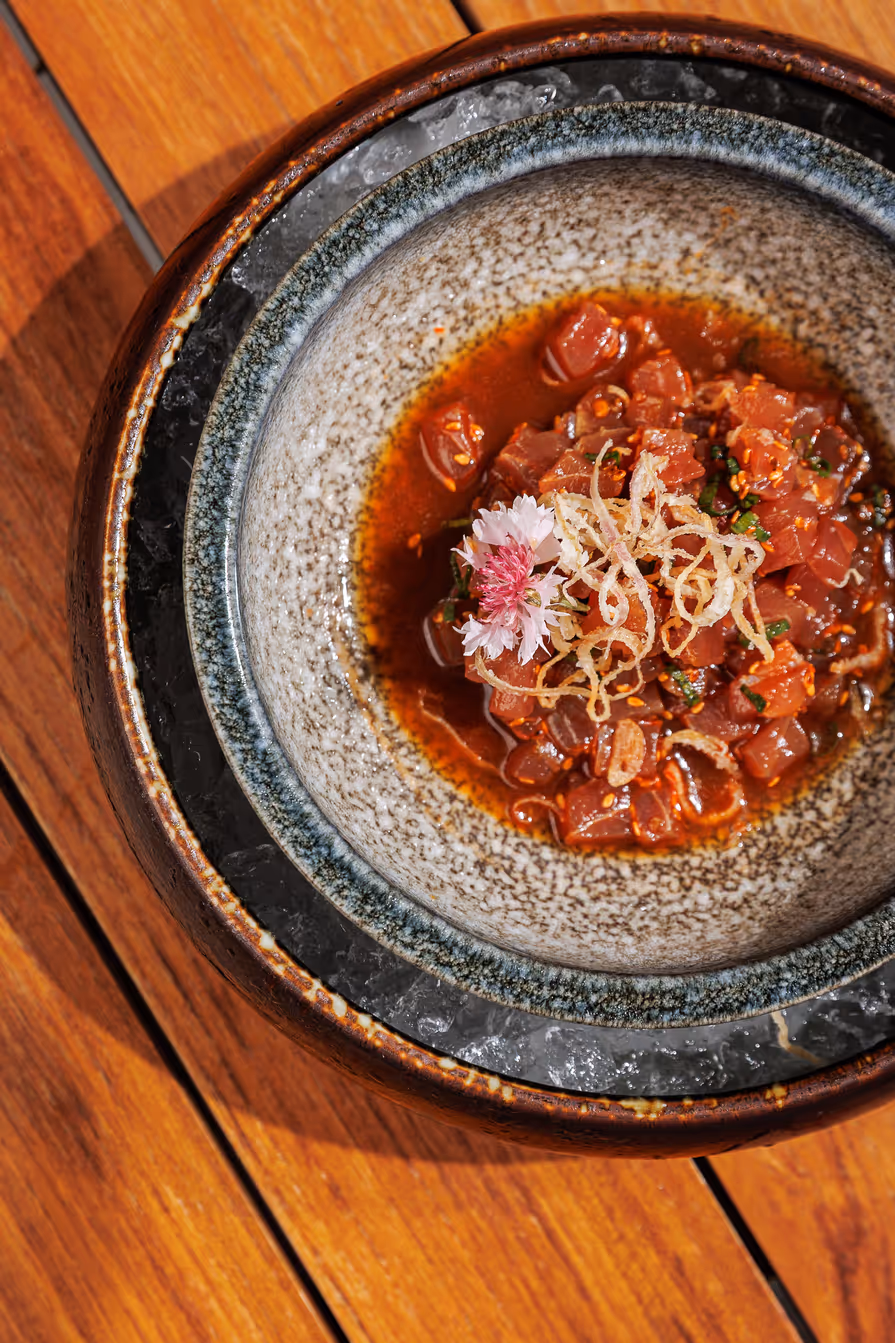 Evenings at Sumosan are centered around contemporary Japanese cuisine and a vibrant social atmosphere. The menu reflects the brand’s global reputation, offering signature sushi, refined Japanese dishes, and an elegant dinner experience by the sea.